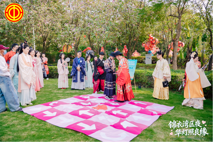 本次活动以古代商旅文化为主线,将汉服妆造、非遗手作、趣味闯关与湾区灯会有机融合,打造出一个兼具文化底蕴与社交温度的互动场景。现场设置“商队组建”“破冰互动”“大湾区第一商”等主题挑战、自由交流、心动交友、夜游灯会等环节,让青年职工在轻松自然的氛围中拉近距离、增进了解。