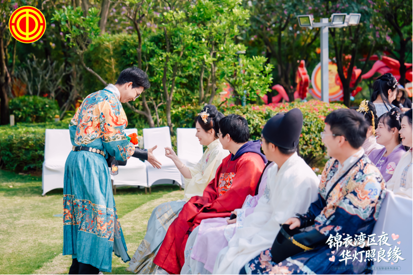 3月7日,由南沙区总工会指导,横沥镇总工会、黄阁镇总工会、港湾街道总工会共同主办的“锦衣湾区夜·华灯照良缘”2026年单身职工交友联谊活动,在广州南沙花园酒店和粤港澳大湾区灯会现场浪漫举行。来自三地各机关、企事业单位的110名青年职工身着明制汉服,沉浸于古风雅集与灯火辉煌之间,开启一场别开生面的浪漫邂逅。